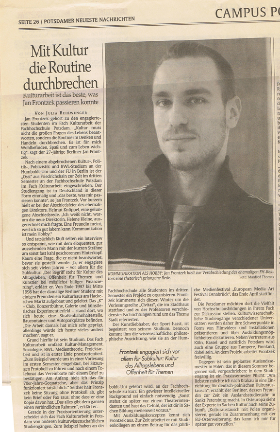 Fachhochschule Potsdam, Assistent der Leitung der Abt. Hochschulmarketing, PR | ||